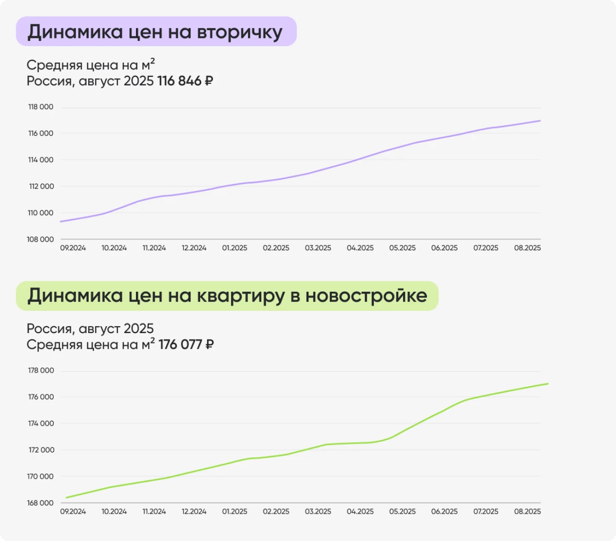 На стоимость влияют и рыночные условия. Сейчас вторичка остается востребованной: цены на новостройки высокие, ставки тоже, и многие предпочитают обмены или сделки без кредитов. В ближайшее время падения цен ожидать не стоит: инфляция и спрос делают жилье относительно устойчивым активом.