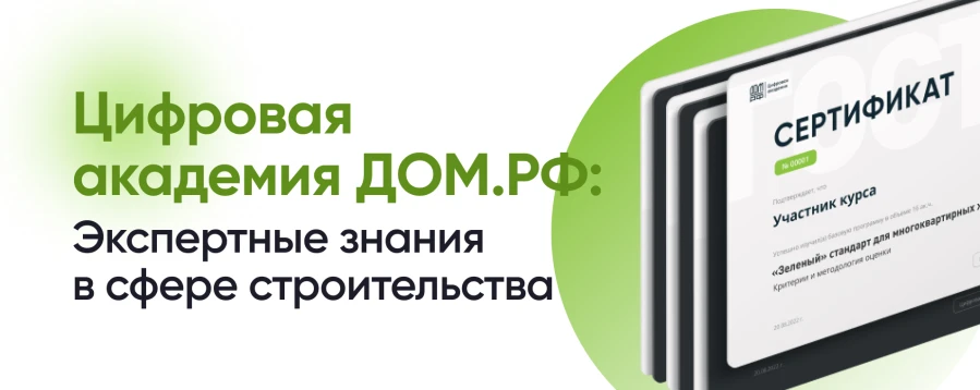 «Зеленый» стандарт для МКД: критерии и методология оценки». Программа о положениях ГОСТ Р 70346-2022, особенностях проектирования и строительства «зеленых» зданий. Реализуется совместно с НИУ ВШЭ.