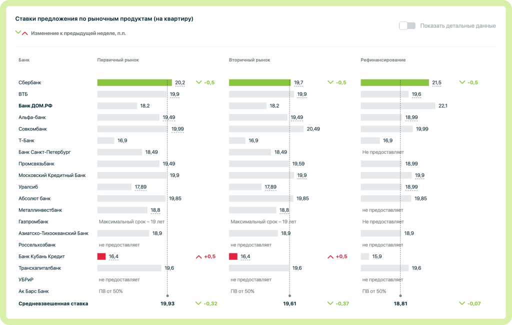 Диапазон ставок по ипотеке в российских банках составляет от 16,4% до 20,2%.